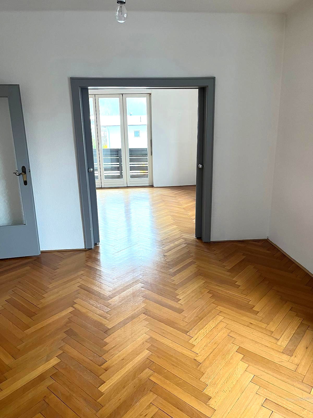 Diese geräumige Wohngelegenheit ist mit schönen Fischgrätparkett, einer Wohnküche, einem Badezimmer Wanne und separatem WC ausgestattet. Der Outdoorbereich teilt sich auf in einen Balkon mit Aussicht und ein eigenes Gartenanteil und bieten Lebensqualität pur inmitten der Stadt.