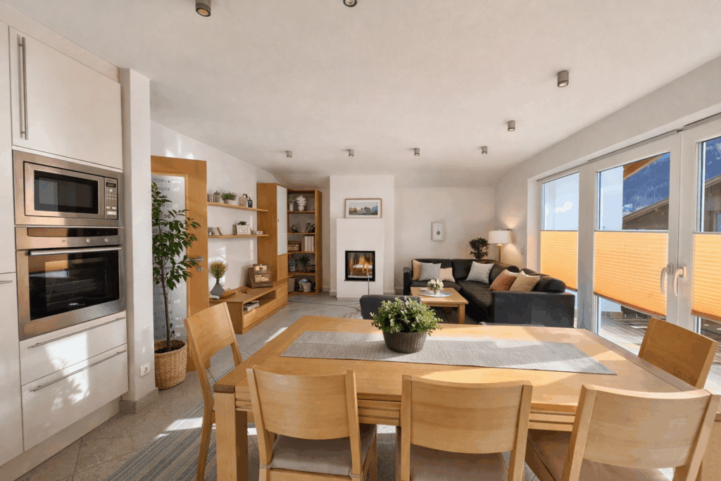 Das Herzstück der Wohnung bildet der nach Süden gerichtete, offene Wohn- Küchenbereich mit direktem Zugang zur sonnigen Loggia, die mit einem beeindruckenden Panorama auf die Südseite sowie den Blick auf imposante Berggipfel der Nordkette begeistert. Das Genießen entspannter Stunden im Freien ist mit dieser Outdoorfläche vorprogrammiert, ob beim Frühstück in der Morgensonne oder beim gemütlichen Ausklang nach einem langen Tag.