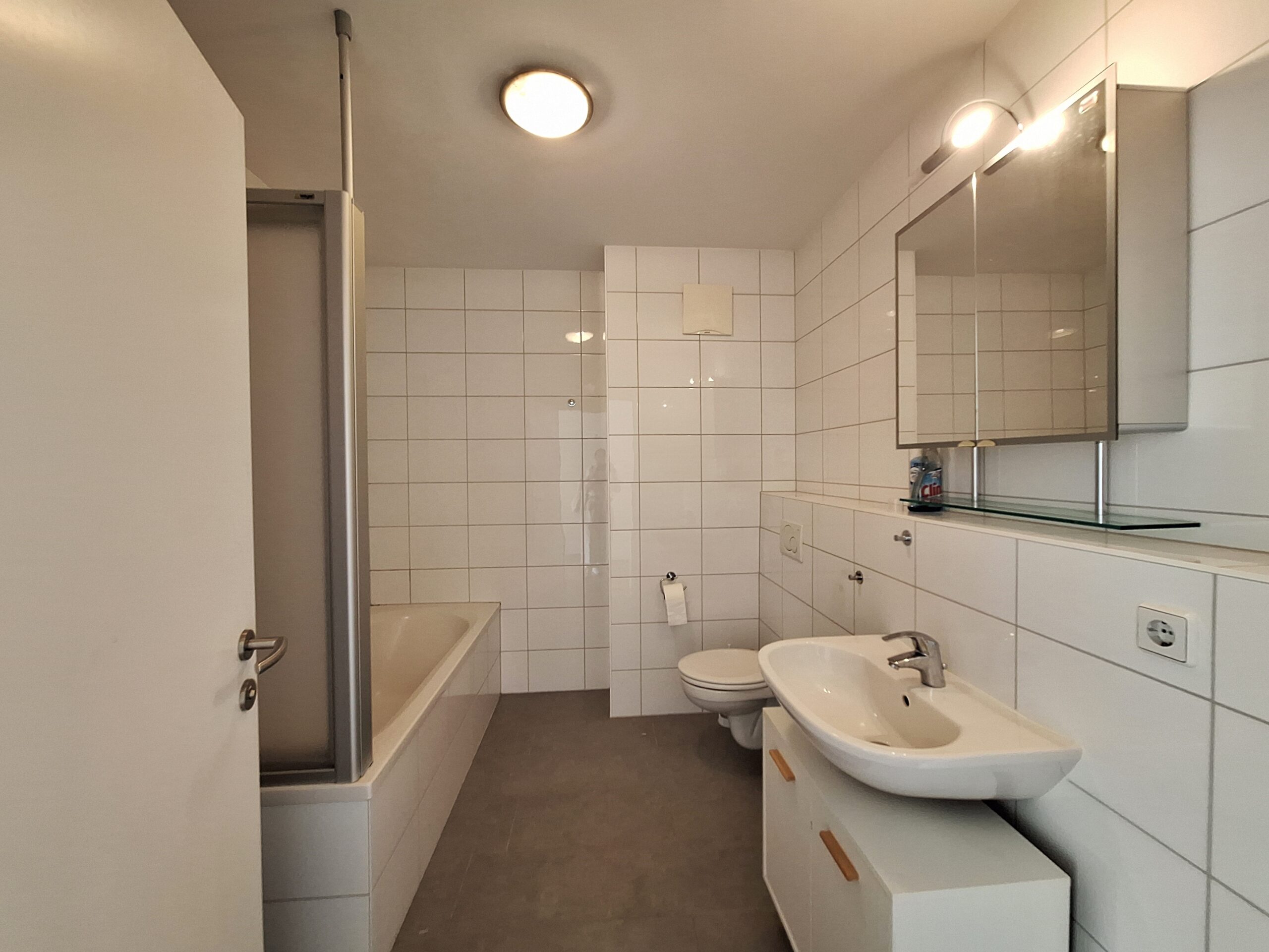 - Das geräumige Badezimmer verfügt über eine Wanne, WC und einen Waschmaschinenanschluss