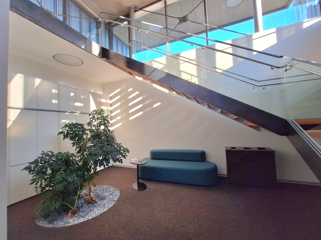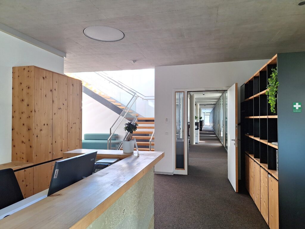 Eine besetzte Rezeption sorgt für einen professionellen Empfang von Kunden und Geschäftspartnern, während eine voll ausgestattete Kaffeeküche für das leibliche Wohl der Mitarbeiter sorgt. Großzügige Outdoorflächen bieten die Möglichkeit für entspannte Pausen im Freien und fördern das Wohlbefinden der Mitarbeiter.